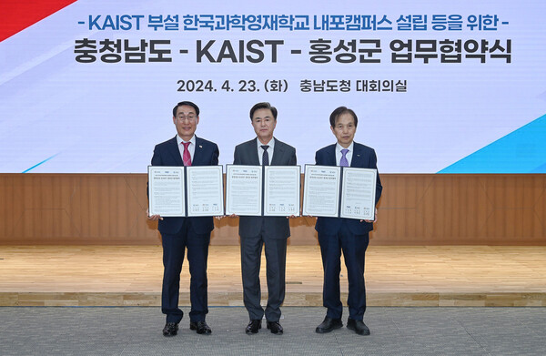 [서울복지신문=장대근 기자] 홍성군과 충청남도, KAIST가 2028년까지 KAIST 부설 한국과학영재학교 내포캠퍼스(이하 영재학교) 설립을 위해 공동 노력하기로 했다.