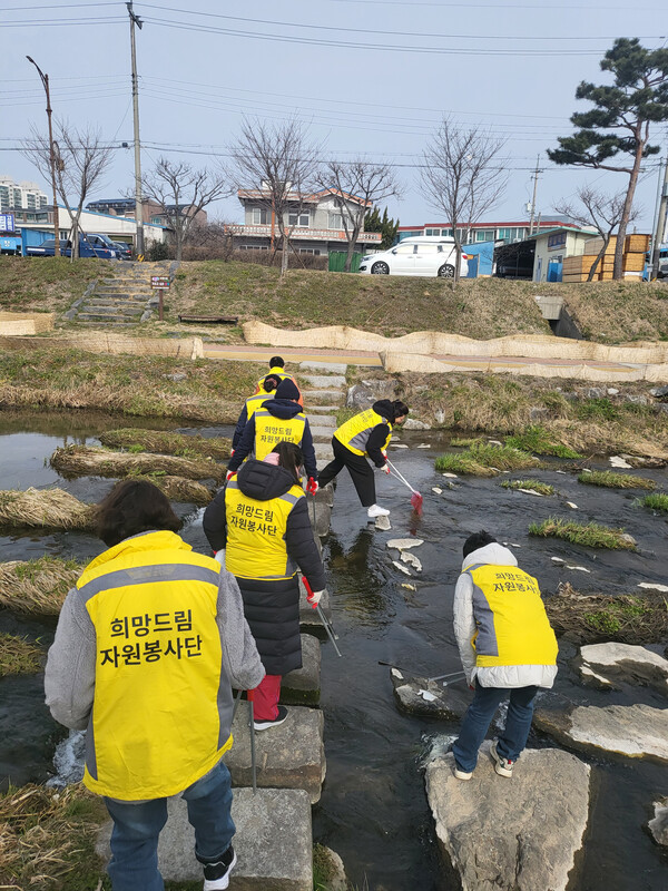 ▲새봄맞이 거리 청소를 봉사를 하고 있는 희망드림 자원봉사단